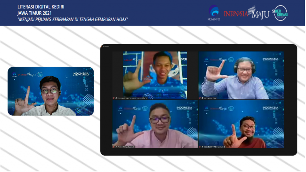KEDIRI, TrijayaNews.id – Kementerian Komunikasi dan Informatika RI (Kemkominfo RI) menyelenggarakan1.251 kegiatan Literasi Digital yang akan berlangsung selama 6 Mei – 6 Desember 2021 di 14 Kabupaten/Kota di JawaTimur I. Kegiatan ini membahas empat  pilar utama Literasi Digital; Budaya Bermedia Digital (Digital Culture), Aman Bermedia (Digital Safety), EtisBermedia Digital (Digital Ethics), danCakap Bermedia Digital (Digital Skills).