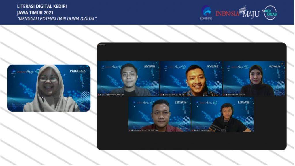 Penyelenggaraan Kegiata Literasi Digital di JawaTimur I kali ini diselenggarakan di kabupaten/kota Kediri. Acara dimulai pukul 09.30 WIB secara virtual menggunakan platform Zoom. Acara dipimpin oleh Moderator Nabila Dwi Putri S.P.W.K. dengan menghadirkan 4 narasumber yaitu  Khusnul Khuroti Ramdannisa, Faizal Johan Atletiko, S.Kom., M.T, Mira N Sahid, S.Pd, Akhmad Firmannamal, Ph.D.., Ulfa Merdeka  (KOL).Tercatat jumlah peserta yang mengikuti acara ini sejumlah 273.
