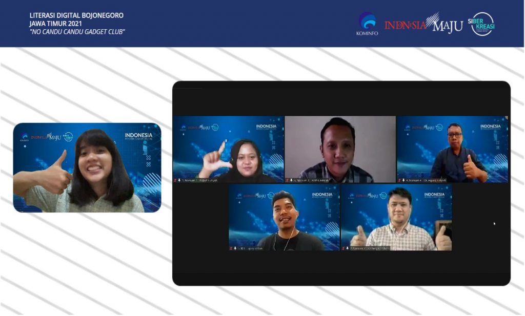 Pada acara kali ini, tema yang diangkat adalah Masih Adakah Privasi Di Dunia Serba Digital dan masing-masing narasumber berbicara  dari sudut pandang empat pilar utama Literasi Digital. Dengan jumlah 273 peserta, dapat dilihat antusiasme dari setiap peserta yang hadir pada acara hari ini, karena peserta seminar dan diskusi secara online yang hadir mempunyai kesempatan untuk bertanya kepada narasumber. Salah satu pertanyaan yang ditujukan kepada narasumber  Mira N Sahid  adalah Mengenai kebebasan berpendapat dan berekspresi di dunia digital, apakah kita diberbolehkan untuk curhat di dalam media sosial? Karena terkadang kita juga butuh ruang untuk menceritakan sesuatu, apakah salah atau benar? Jika boleh, batasan – batasan seperti apa untuk curhat dimedia sosial yang aman? Apakah etika yang dianut media selama ini masih relevan? Dan pada saat itu Mira N Sahid. langsung memberikan jawaban semua dikembalikan pada diri masing-masing, perlukah kita membagikan cerita pribadi kita dalam media sosial, apakah ada manfaatnya. Jangan sampai menjadi boomerang bagi diri sendiri pada persoalan di masa yang akan datang. Dan kemas dengan lebih baik jangan secara tulisan gamblang karena itu akan memberikan efek tertentu kepada curhatan kita yang tadinya niatnya hanya curhat jadi terkesan kita sembarangan menyebarkan kehidupan pribadi kita di ruang public. Kalau dalam keadaan emosi, sabar dulu, baca dulu sebelum posting. Yuk pahami etika didunia digital, kemas dengan hati yang menyenangkan supaya memberikan postingan yang positif dan bermanfaat. Untuk mengapresiasi para peserta yang bertanya mendapatkan doorprize sebagai bentuk apresiasi.  Dan juga seluruh peserta webinar yang hadir mendapatkan e-certificate.  Dengan berakhirnya acara kegiatan webinar hari ini, moderator, para narasumber, praktisi dan juga seluruh peserta yang hadir diminta untuk berfoto bersama melalui platform zoom sebagai wujud apresiasi terhadap seluruh narasumber dan juga peserta yang mengikuti kegiatan webinar ini.