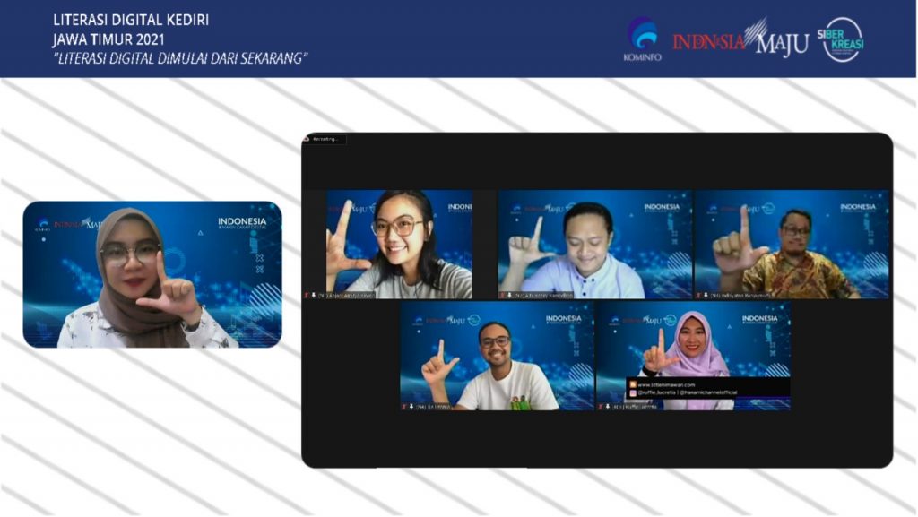 Penyelenggaraan Kegiatan Literasi Digital di Jawa Timur I kali ini diselenggarakan di kabupaten/kota Sidoarjo. Acara dimulai pukul 09.30 WIB secara virtual menggunakan platform Zoom. Acara dipimpin oleh Moderator, Muhamad Ridho, dengan menghadirkan 4 narasumber yaitu Ir. Andre Parvian Aristio, S.Kom., M.Sc., Chusnur Ismiati, S.H, M.M, Rachel Octavia, Andy Ardian, SP dan Erbe Sentanu (KOL).  Tercatat jumlah peserta yang mengikuti acara ini sejumlah 351.