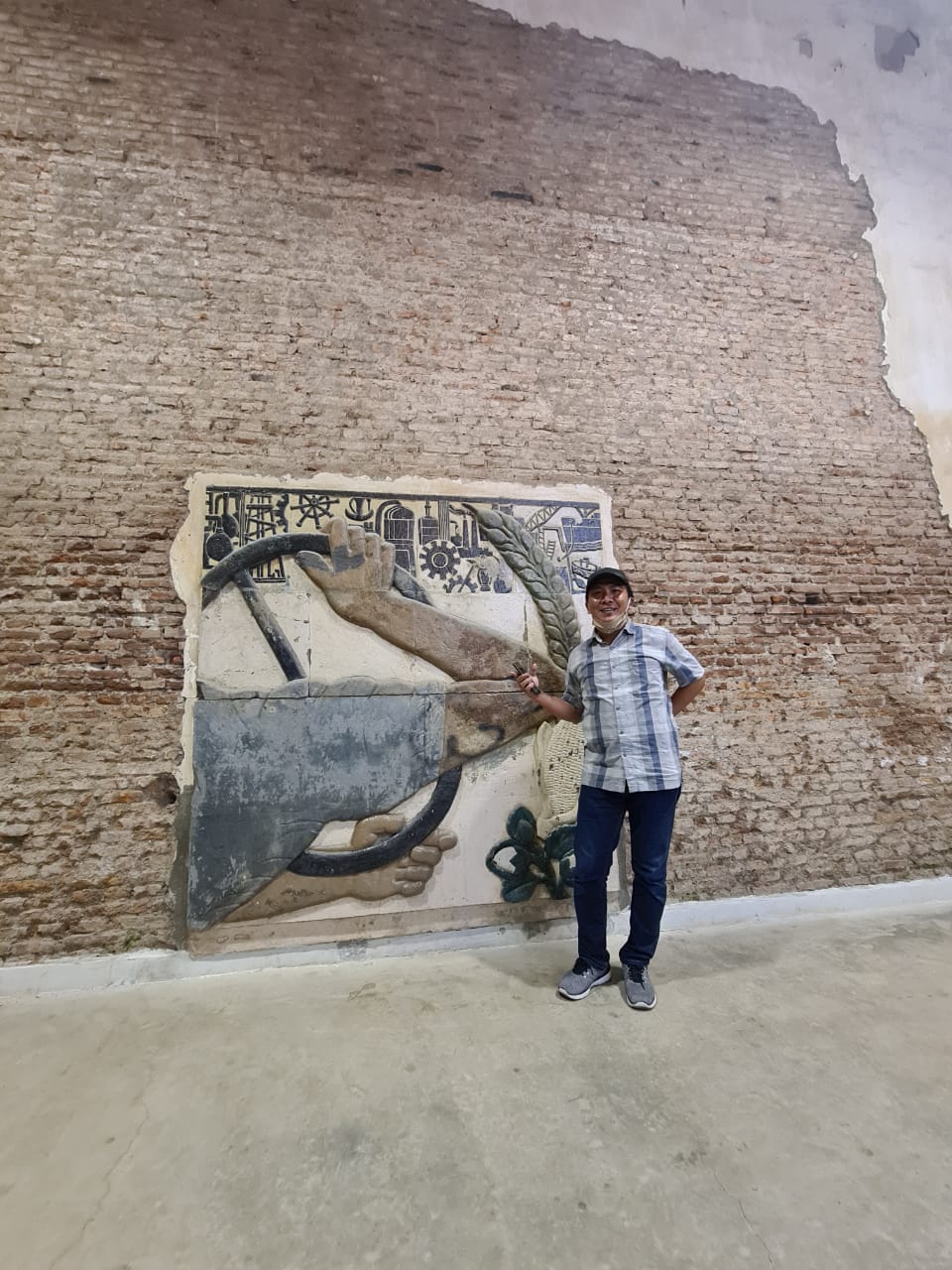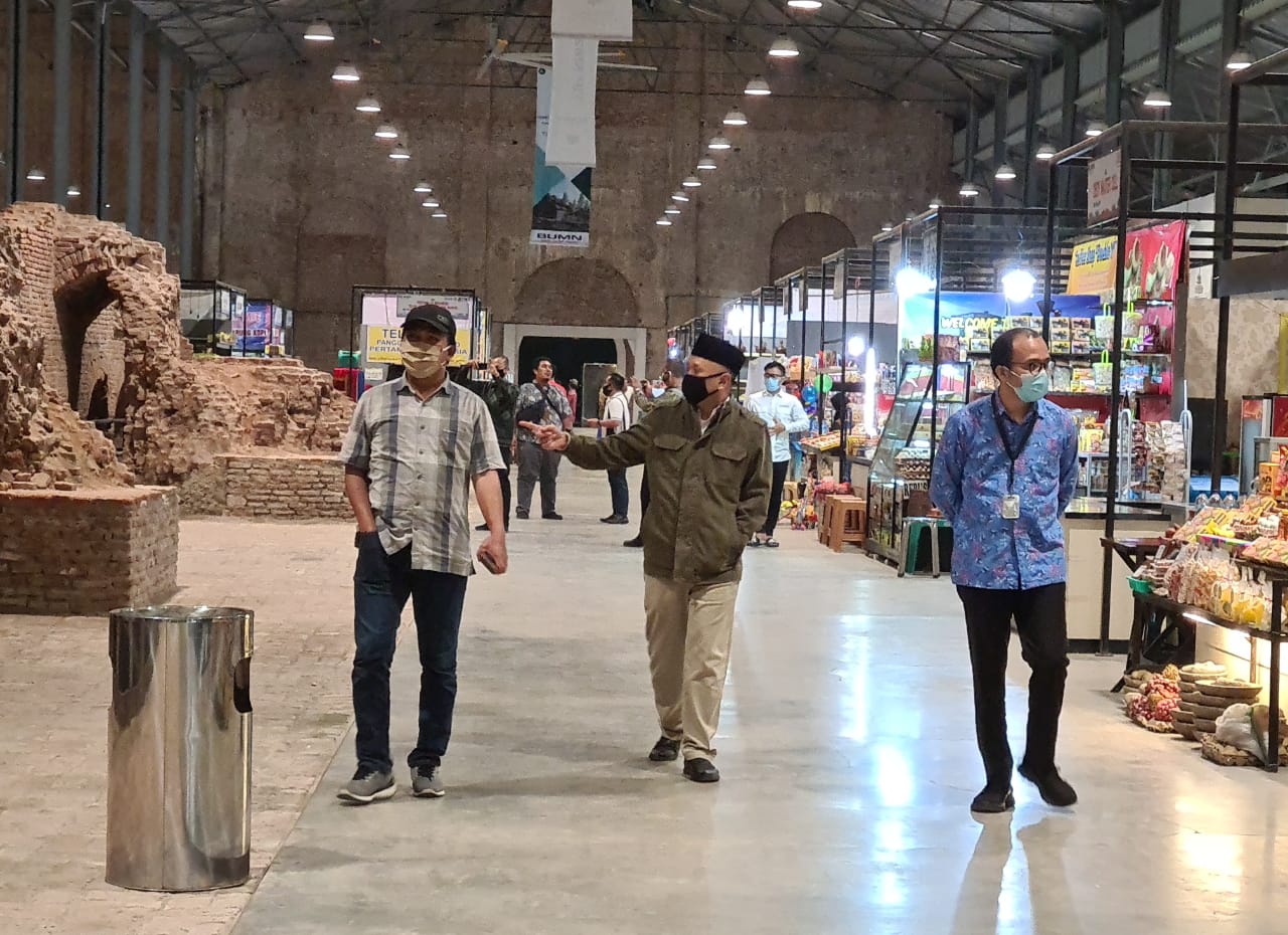 Menteri Koperasi dan UKM RI Teten Masduki, bersama Stafsus Riza Damanik melihat dari dekat rest area sejarah di km 260b tol trans jawa. Bekas pabrik gula tersebut berada di desa Banjaratma, Brebes, Jawa Tengah