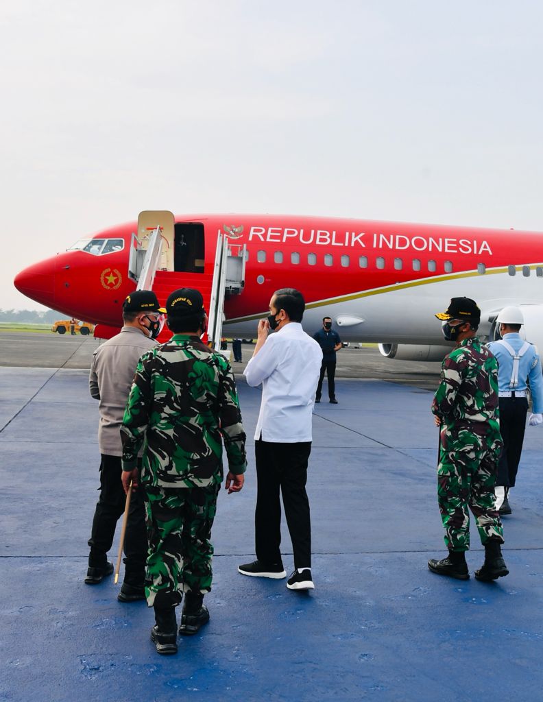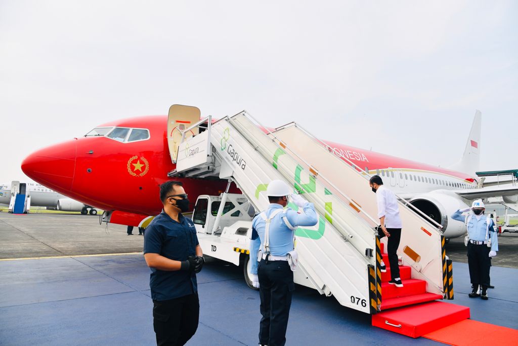 JAKARTA, TrijayaNews.id – Presiden Jokowi menggunakan pesawat Kepresidenan Boeing Business Jet (BBJ) 2 yang telah dicat merah putih untuk kunjungan kerja ke Provinsi Jawa Timur, Kamis (19/8/2021).