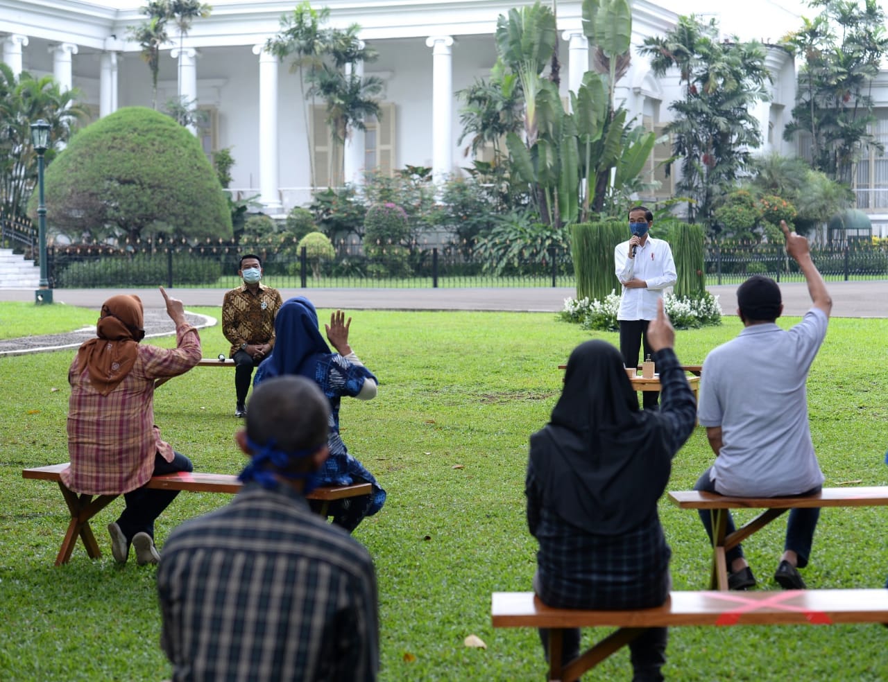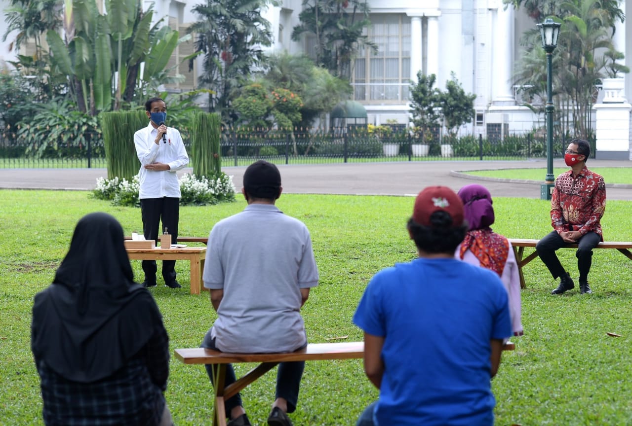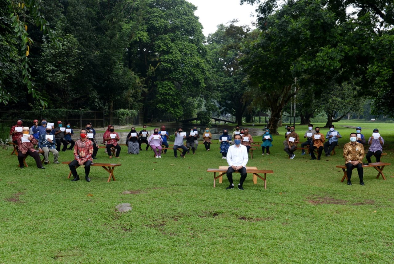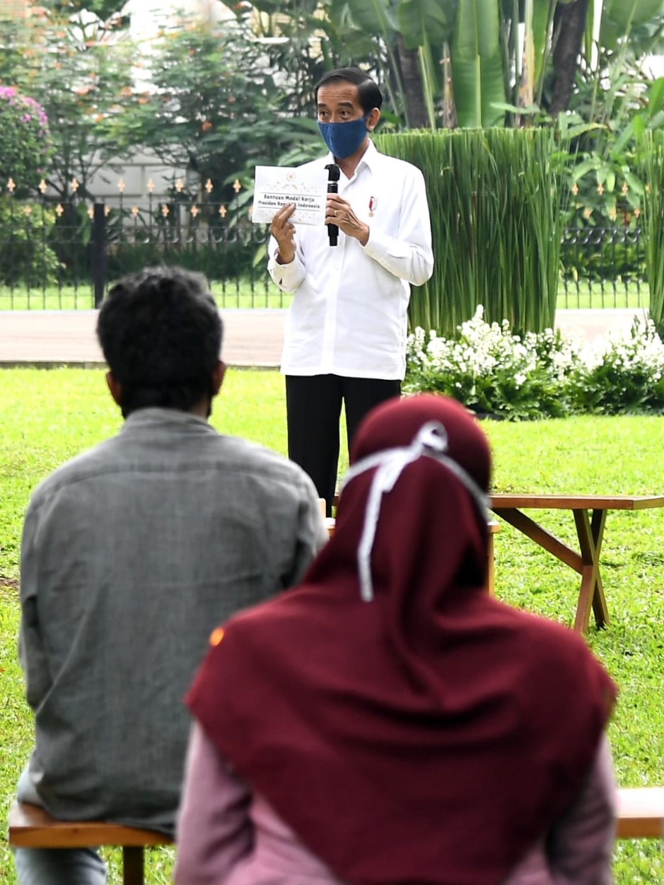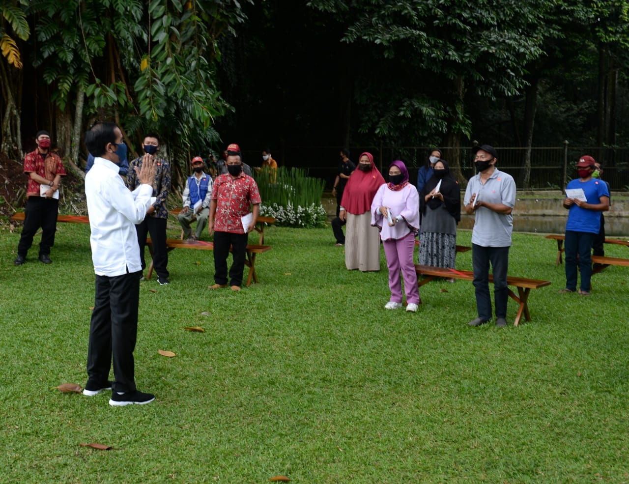 BOGOR, TrijayaNews.id – Presiden Joko Widodo kembali menyerahkan bantuan modal kerja darurat kepada sejumlah pelaku usaha kecil yang terdampak pandemi Covid-19. Penyerahan bantuan untuk yang kedua kalinya ini digelar di halaman Istana Kepresidenan Bogor, Jawa Barat, pada Rabu, 15 Juli 2020. (Foto: Rusman – Biro Pers Sekretariat Presiden)